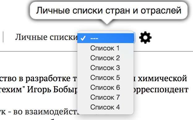 3) выстроить собственную ленту новостей на кнопке «Личные списки», в нижней части рубрикатора, подбором уже любого числа отраслей / стран / фед. округов РФ / источников; эта конструкция будет пополняться и ее можно смотреть в интернете с любого устройства; число лент в «Личных списках» не ограничено;